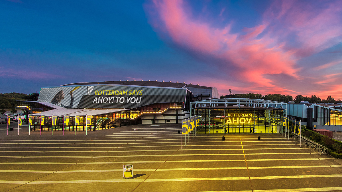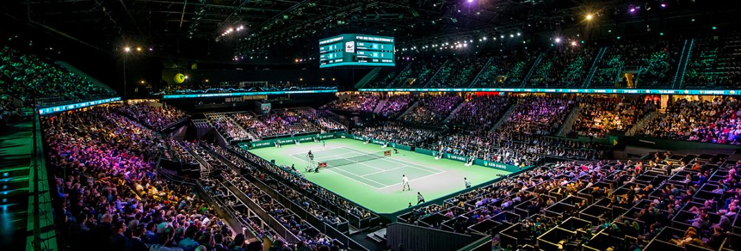 A sinistra la Rotterdam Ahoy (www.ahoy.nl); a destra, l’interno durante gli ATP 500 del 2016 (foto kivnl).