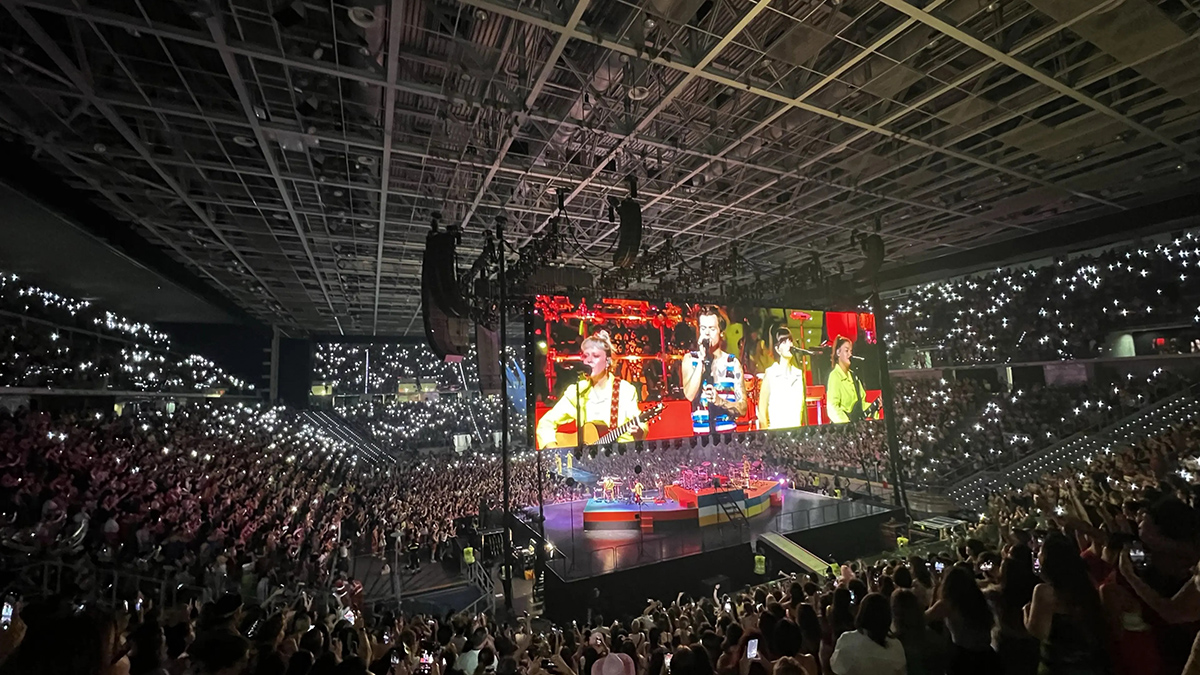 A sinistra l’Inalpi Arena di Torino durante gli ATP Finals del 2024 (foto Marco Rubino). A destra, uno spettacolo di Harry Styles nel 2022 all’Inalpi Arena (www.inalpiarena.it).