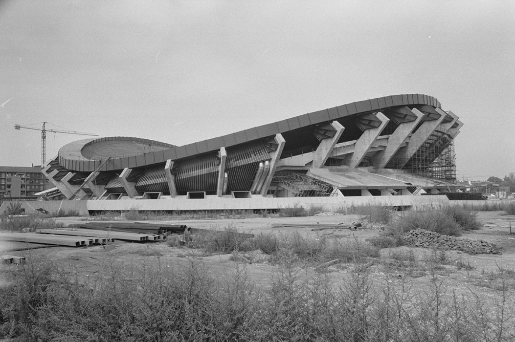 Due immagini del Palasport in costruzione provenienti dalla ETH-Bibliotek di Zurigo, diffuse con licenza Creative Commons (foto Christof Sonderegger).