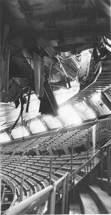 Interno del Palasport dopo il cedimento della copertura (autore ignoto).