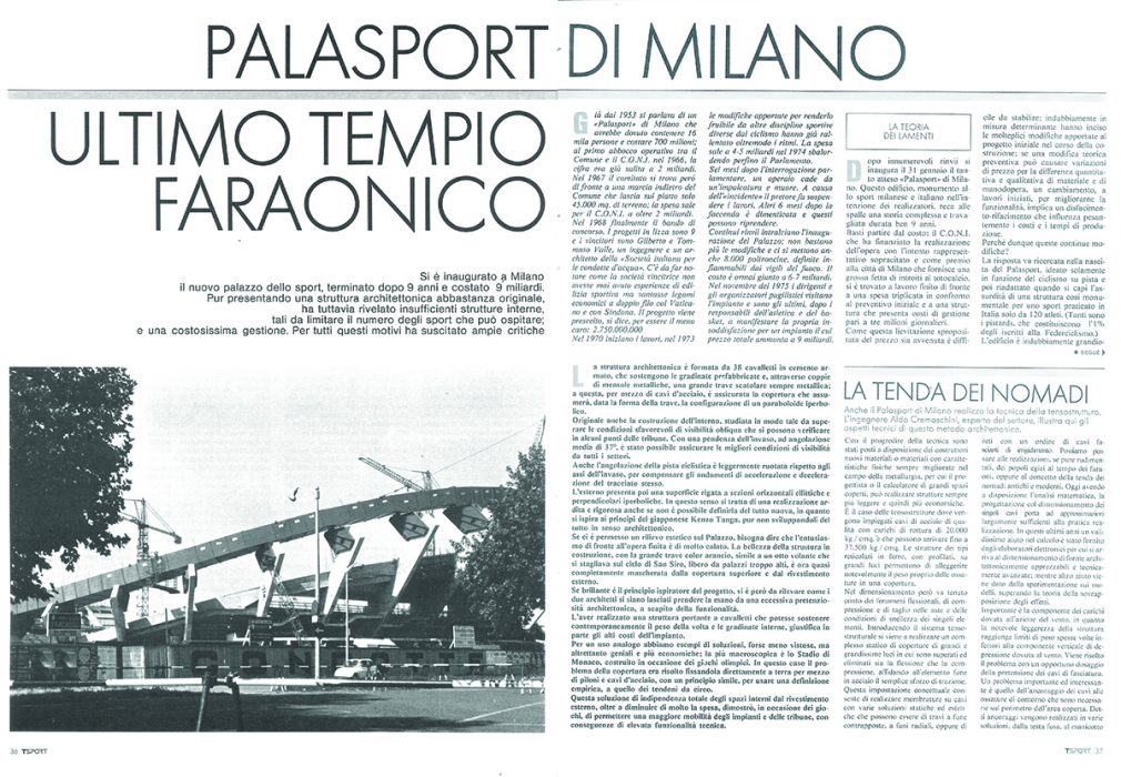 L’articolo pubblicato sul primo numero di TSPORT con le critiche del momento al nuovo Palasport.