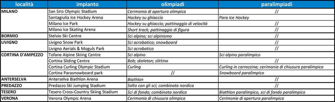 Ecco dunque un quadro dei luoghi della XXV Olimpiade e Paralimpiade invernale.