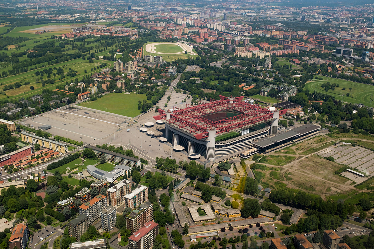 Pe arrivare alla dimensione degli stadi italiani occorre scendere fino ai 75.923 spettatori previsti per il Meazza di Milano. Va ricordato che, anche per questo impianto, c’è stata un’epoca in cui la capienza era maggiore: nel 1937, con la chiusura dei distacchi tra gli spalti e l’elevazione delle curve preesistenti, sì era creata una gradinata unica continua che portava la capienza dello stadio a circa 100.000 posti.