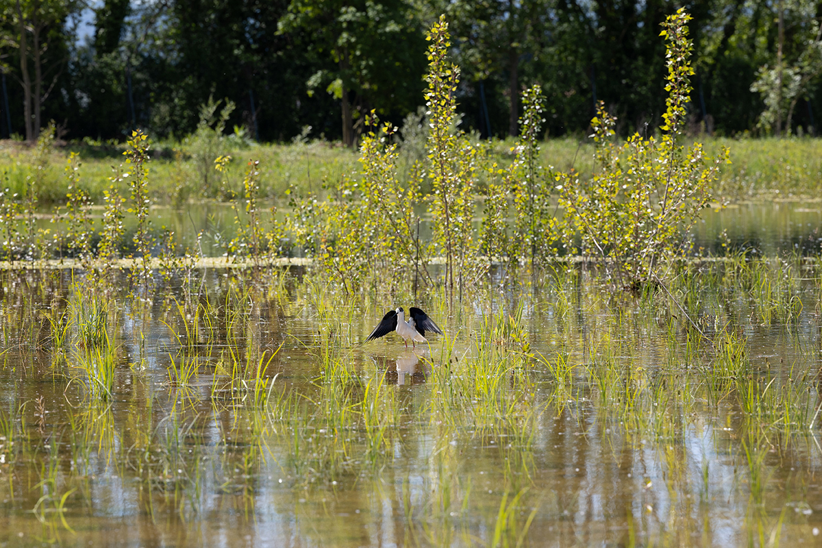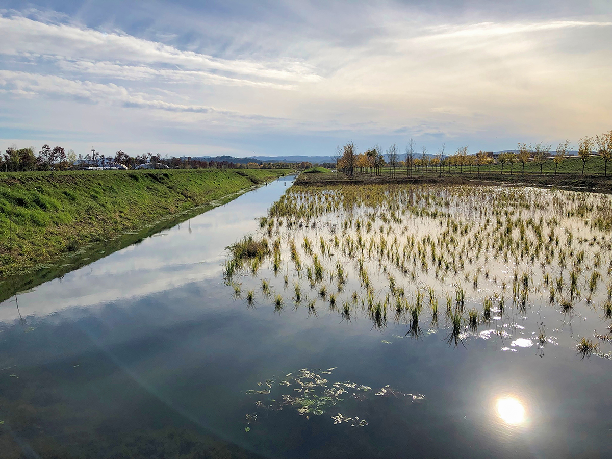 È stato realizzato un sistema di canali esteso per oltre 9 km, che raccorda anche laghi, zone umide e bacini allagabili. I canali sono alimentati da una falda superficiale e dotati di sistemi di regolazione e rilascio. Inoltre, il complesso sistema idrico è capace di assorbire e rilasciare fino a 100 mila metri cubi di acqua ed è progettato per fronteggiare gli effetti di eventi alluvionali.