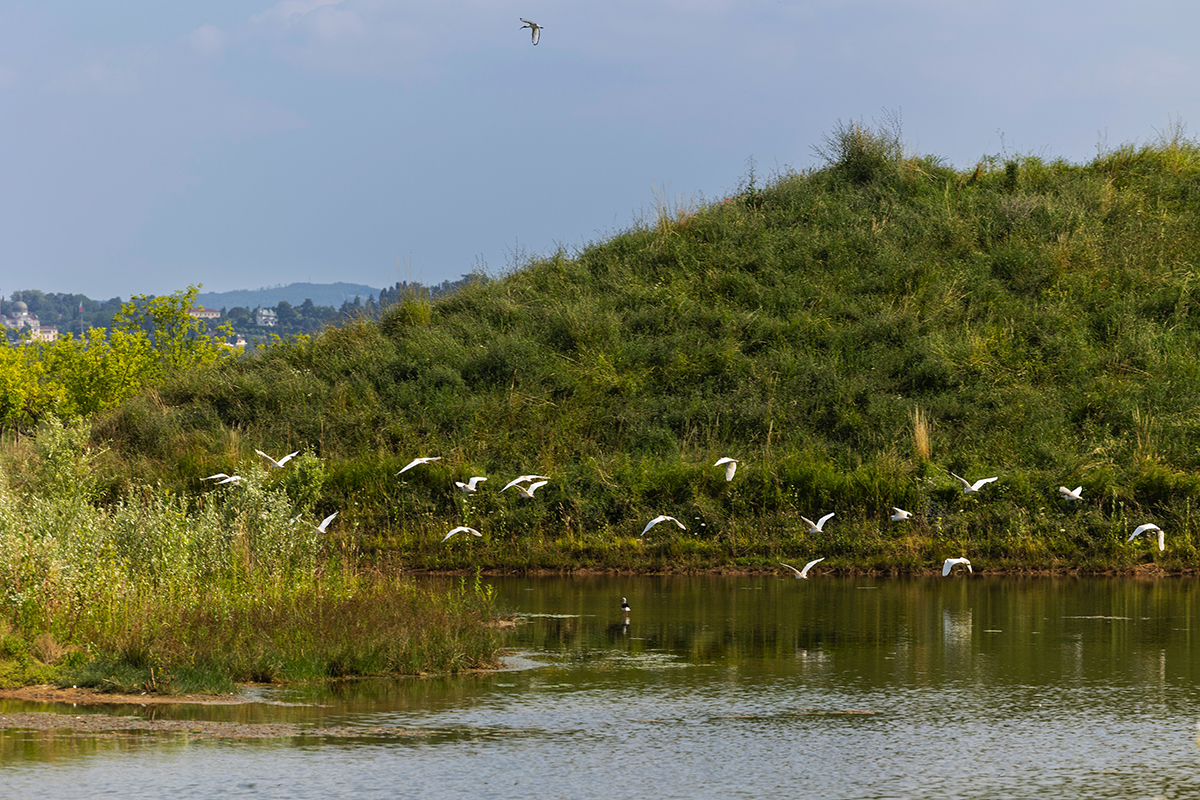 Presenta rilievi e colline, isole e depressioni, prati alti e fioriti, prati rasati per lo sport, prati umidi, un prato selvaggio coltivato a farro. Ci sono boschi con alberi e arbusti. Fra gli animali, sono state documentate presenze di folaghe, aironi, garzette, cormorani, cavaliere d’Italia, tartarughe, rane, libellule, pesci e piccoli mammiferi.
