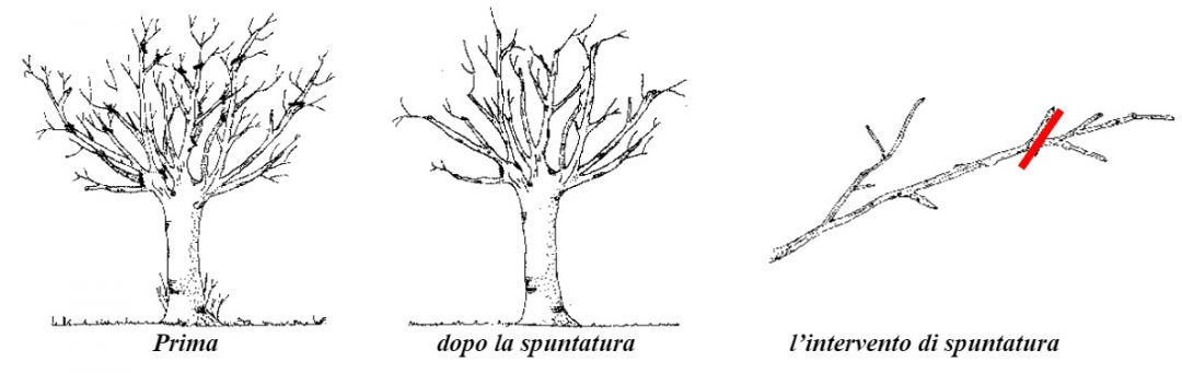 Con la spuntatura si va ad influenzare molto la morfologia (portamento) dell’albero in quanto si vanno ad alterare i fenomeni ormonali di dominanza apicale: il risultato sulla pianta tende a portare verso l’affastellamento e alla codominanza.