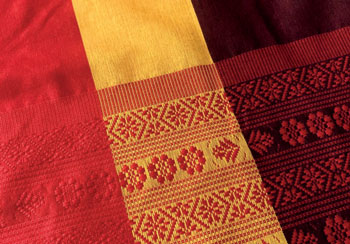 Fin dalla nascita, i neonati vengono avvolti nell’Abel (l’Inabel – o Abel – Iloko è fatto a mano su larghi telai con una tecnica definita Abel dalle donne artigiane dell’Ilocos: foto a sinistra, tratta dal catalogo Filipiniana and Barong Shop di New York). In età adulta, lo usano nei matrimoni; alla morte, lo usano per avvolgere i defunti. Il processo di fabbricazione di questo tessuto viene tramandato di generazione in generazione e preserva il carattere e l’identità degli ilocani. Il motivo crea una scala umana facilmente riconoscibile grazie ai suoi motivi geometrici uniformi e intrecciati che danno vita a un’illusione ottica tradizionale che rappresenta le onde del mare e protegge dagli spiriti maligni.