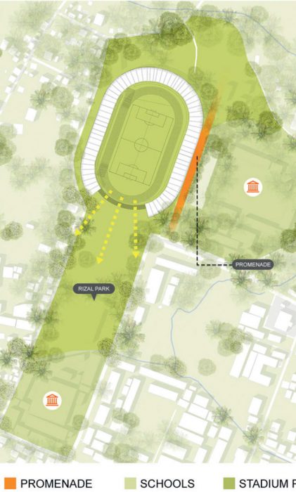 Il Ferdinand E. Marcos Stadium si trova nel cuore della città di Laoag, nella provincia di Ilocos Norte. In un Paese con oltre 100 milioni di abitanti, questo è solo il terzo stadio con 12.000 posti a sedere. Le Filippine hanno anche solo 5 mq di spazio urbano aperto a persona, mentre la capitale nazionale ha solo 0,89 mq di spazio verde a persona. Qui, il nuovo stadio mira a trasformare il sito precedente in un parco-stadio dinamico che offrirà spazi per tutti.